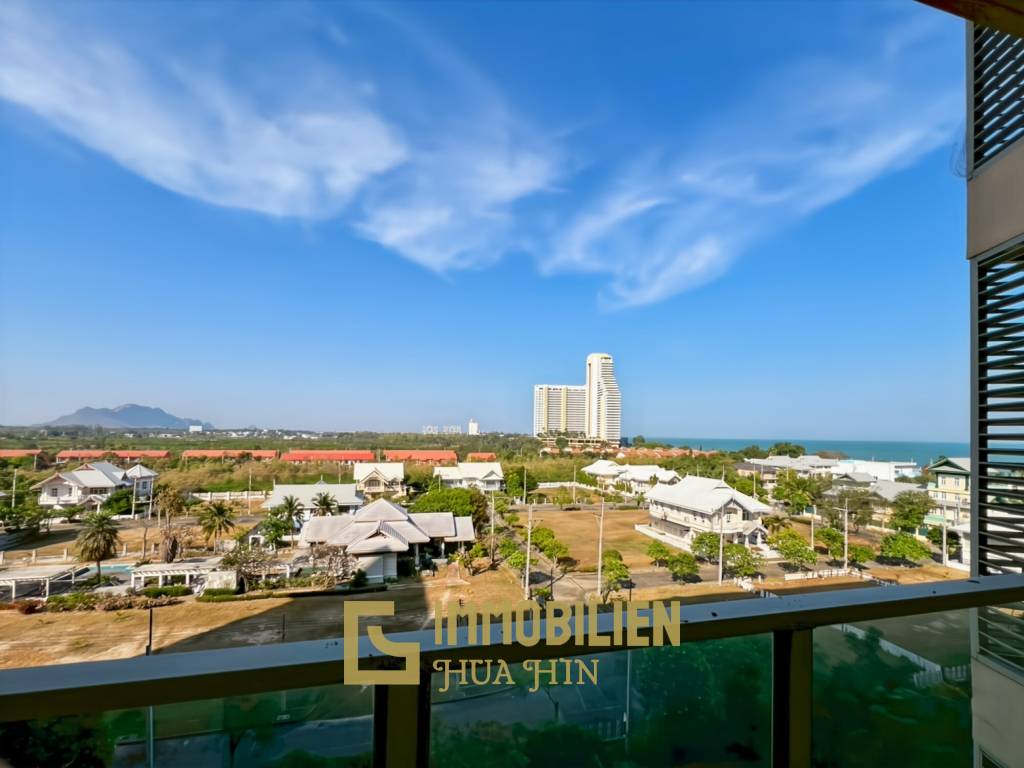 Moderne und helle 45 qm große Eigentumswohnung im 7. Stock des Baan Thew Talay Aqua Marine in Cha Am, Phetchaburi.