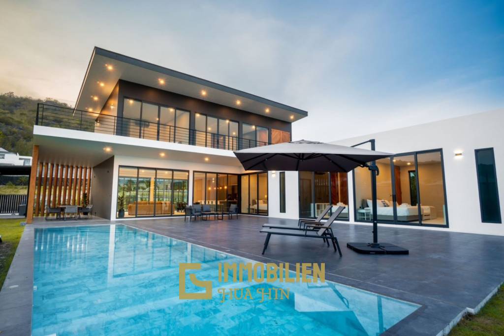Diese moderne einstöckige Pool Villa in Phu Montra K-Haad in Nong Kae, Hua Hin, bietet ein elegantes und zeitgemäßes Wohnambiente. Das Anwesen verfügt über eine beeindruckende Wohnfläche von 545 qm und ein großzügiges Grundstück von 777,6 qm. Es handelt sich um eine Neubauanlage mit nur 20 Einheiten. Die Villa wird inklusive kompletter Möblierung angeboten.
