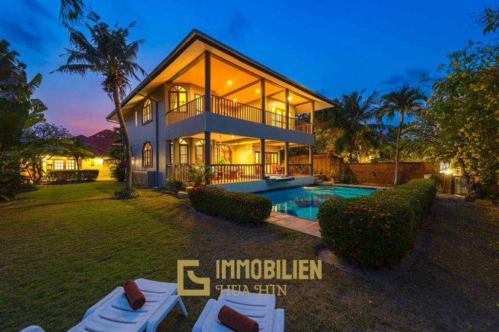 Lo siguiente Villa Ventaestá ubicado en Crystal View, en Hua Hin, Prachuap Khiri Khan y está disponible al precio de venta de ฿15.0metro, (฿34,091 por metro cuadrado). El tamaño de la propiedad es 440 SQM y 4 baños y 4 baños Las principales características de esta propiedad incluyen :24-Stunden-SicherheityÜberdachter Parkplatz.