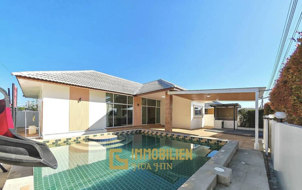 Насладитесь тропической жизнью в этой прекрасно построенной вилле с бассейном, идеально расположенной в тихом, но удобном районе Сой 70 в Хуа Хине. Комфортабельная, уединенная и стильная, эта резиденция идеально подходит для семей или взыскательных арендаторов, ищущих жилье на длительный срок.