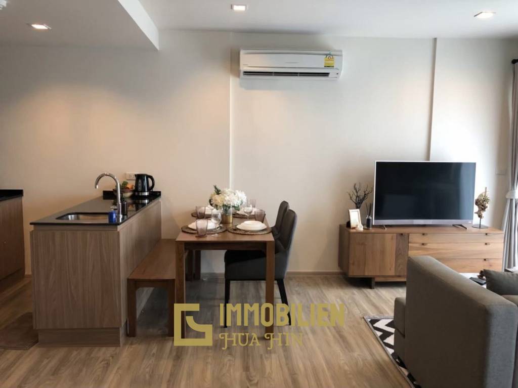 คอนโดสไตล์รีสอร์ตชั้น 6 พื้นที่ 45.5 ตร.ม. แบบ 1 ห้องนอน 1 ห้องน้ำ ในอำเภอชะอำ จังหวัดเพชรบุรี มอบบรรยากาศพักผ่อนที่ลงตัว พร้อมกรรมสิทธิ์ Freehold และเฟอร์นิเจอร์ครบชุด (Fully Furnished) พร้อมเข้าอยู่ทันที